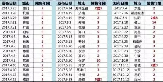 2017年3月25日,厦门成为全国首个出台限售令的城市,要求新购住房须取得产权证后满2年方可上市交易。随后全国各地纷纷加入“限售者联盟”,据不完全统计,目前已有48个城市出台了限售政策,限售时间基本在2至5年不等。近期,厦门、福州、青岛、广州、东莞等十城的限售令已到期,4月份济南、西安两个热点城市限售令即将到期。