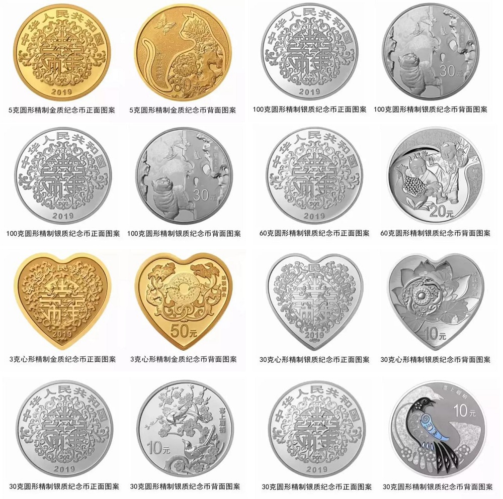 中国人民银行定于2019年4月18日发行2019吉祥文化金银纪念币一套。该套金银纪念币共7枚,其中金质纪念币2枚,银质纪念币5枚,均为中华人民共和国法定货币。最火的央行心形纪念币长啥样?价格多少?哪里可以买到央行心形纪念币?