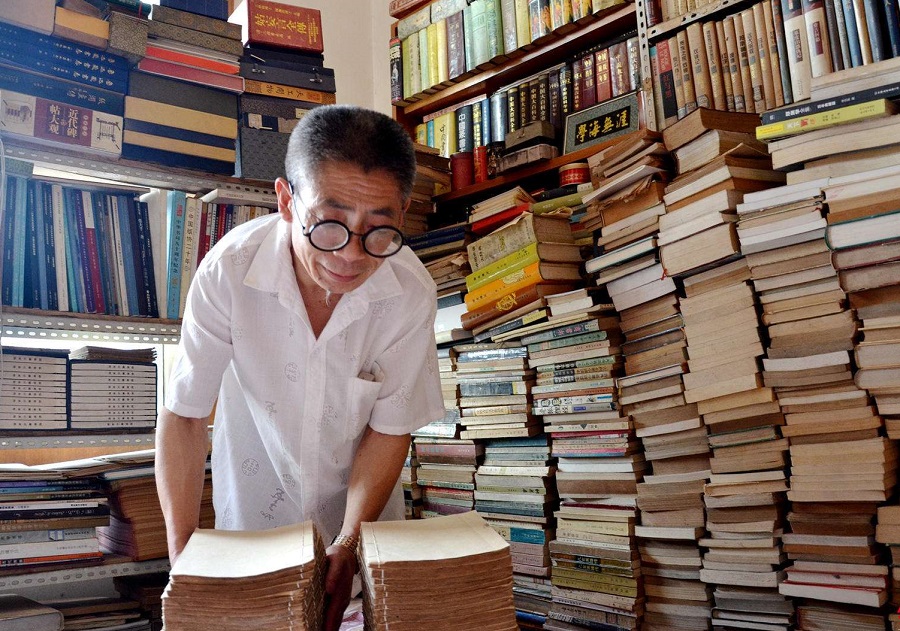 他眼中的这些“精神财富”,曾被妻子看成废纸一堆,劝他卖书换钱供儿子上大学,但他坚决不肯,仍是继续悄悄买书带回家中,至今如此。