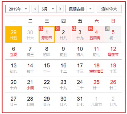 1经国务院批准,2019年劳动节放假安排调整为2019年5月1日至4日,共4天。4月28日(星期日)、5月5日(星期日)上班。五一放假4天你们怎么安排去哪儿玩呢? 通知指出,各地区、各部门要抓紧做好本地区、本领域的劳动节假期调整落实工作,采取有效措施,保障交通运力,加强旅游服务,丰富产品供给,强化综合调控,确保平稳运行。 通知要求,劳动节期间,要妥善安排好值班...